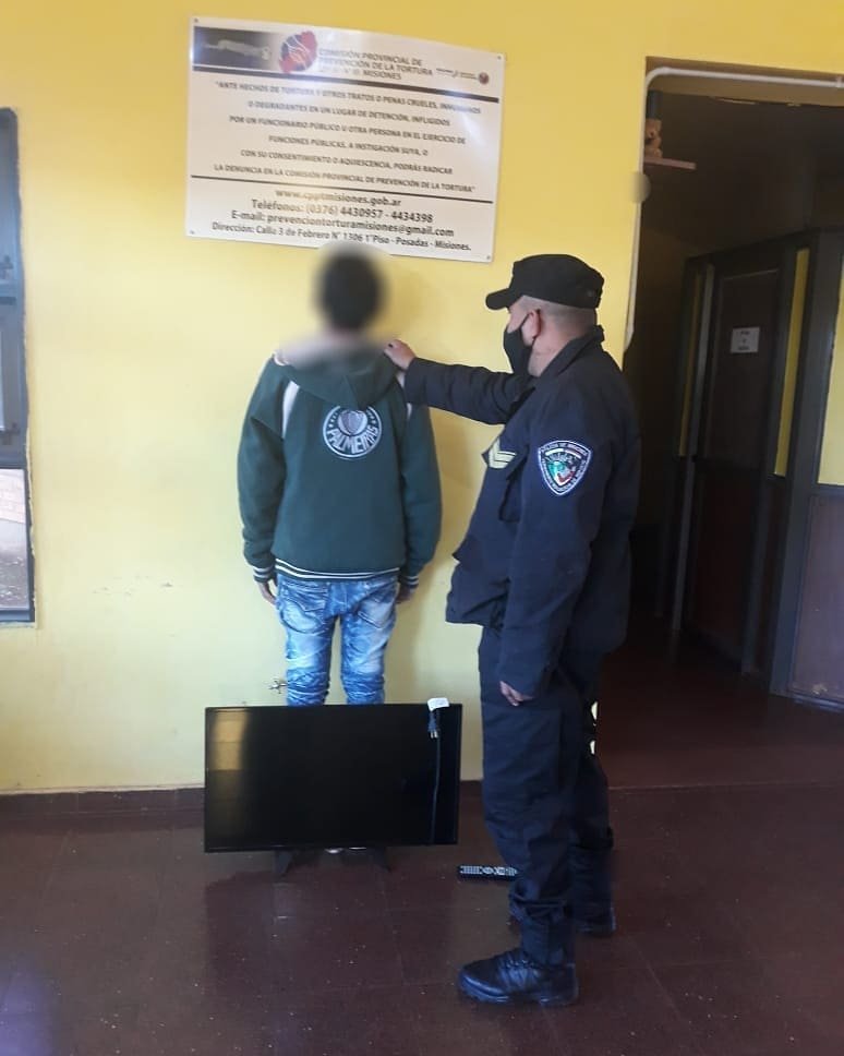 A raíz de una alerta proveniente del Centro Integral de Operaciones (CIO-911), los policías tomaron conocimiento que una residente del citado barrio, fue víctima de un hecho de hurto en su domicilio en horas de la madrugada. En el lugar, con los datos recabados y a través de averiguaciones, determinaron la identidad de los autores del ilícito, quienes además estarían ofreciendo para la venta un tv Smart de 32’. Tras una breve recorrida por la zona, localizaron y aprehendieron a los acusados, y en su poder incautaron el aparato. Por disposición de la Justicia, el joven de 21 años terminó alojado en sede policial, en tanto que el menor fue entregado a sus padres. Lo recuperado, finalizados los trámites de rigor, fue restituido.