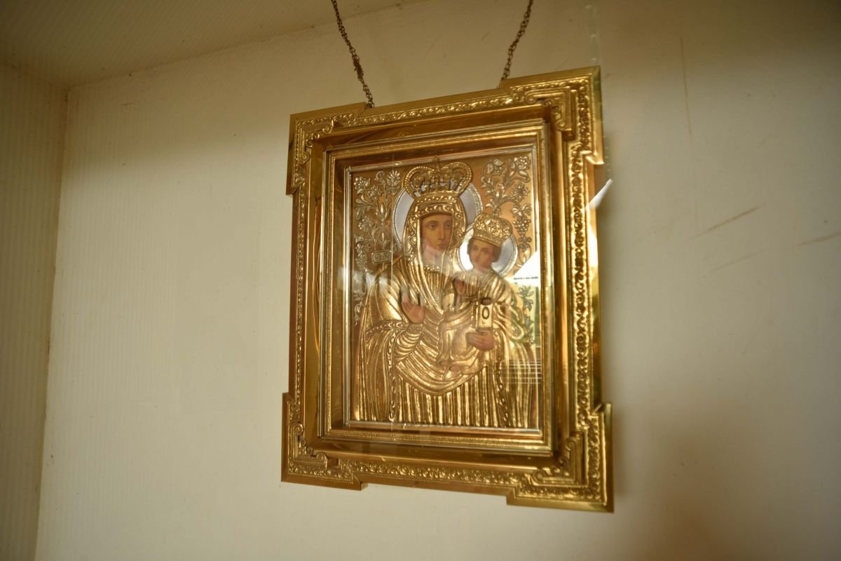 El ícono bizantino de la Virgen y el Niño o theotokos ‘la que dio a luz a Dios’, está detrás de un cristal, como para comunicar que alguna grandeza guarda. La reliquia data del siglo XV, es de origen libanés y fue donada por el Vaticano a la provincia de Misiones en gesto de aveniencia por la construcción del Parque Temático. Llegó en 2009, como parte de la gestión del Cardenal Leonardo Sandri que conectó al entonces Papa Benedicto XVI con autoridades misioneras.