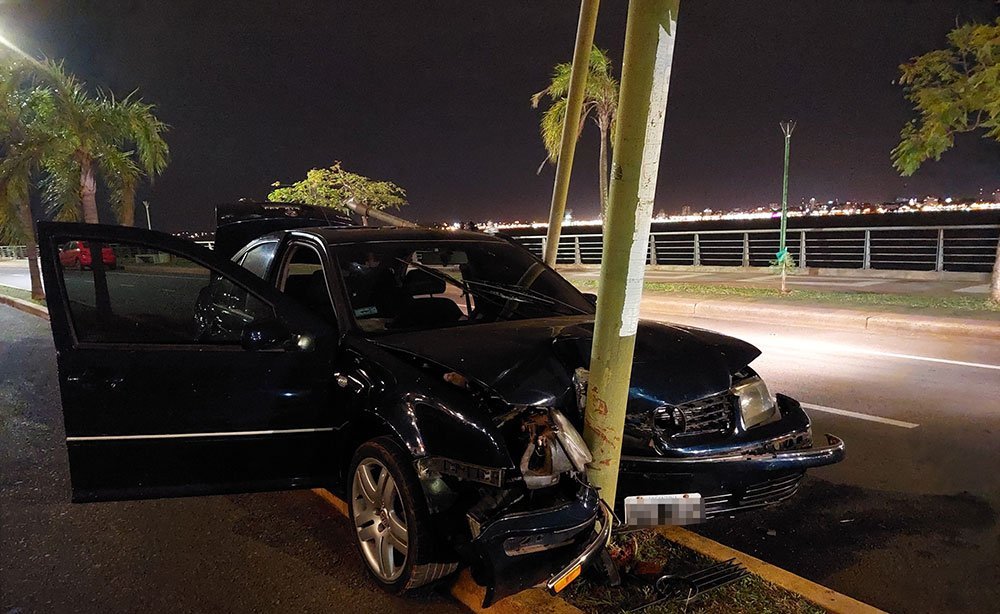 Este viernes por la tarde, por causas que se tratan de establecer, un joven de 27 años al mando de un VW Bora impactó el vehículo contra una farola de la avenida costanera en Posadas, en inmediaciones del monumento al General Andrés Guacurarí.