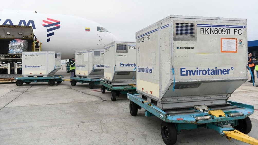 La aeronave Boeing 767, de la compañía Latam Cargo Colombia, bajo el número UC1407, aterrizó en el aeropuerto internacional de Ezeiza a las 10 después de haber partido a las 0.32 desde la ciudad estadounidense de Miami, con 1.139.000 dosis de vacunas en sus bodegas y fue recibido en Ezeiza por el jefe de Gabinete, Santiago Cafiero, y la ministra de Salud, Carla Vizzotti.