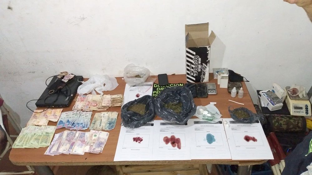 En la requisa se secuestraron 143 gramos de flores de cannabis sativa y 21 gramos de clorhidrato de cocaína, una balanza digital, tres teléfonos celulares y poco más de 25 mil pesos en efectivo. El valor del estupefaciente fue estimado en 60 mil pesos.