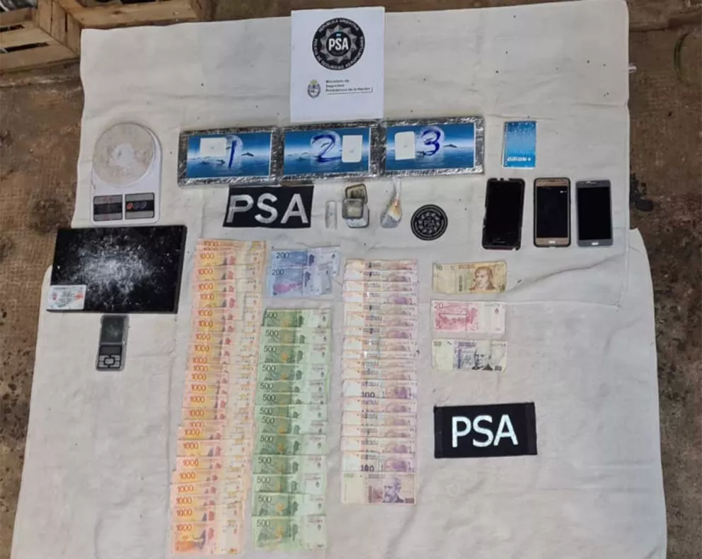 En el presunto búnker había marihuana y cocaína fraccionada, además de balanzas de precisión, cerca de 33.000 pesos en efectivo, celulares y otros elementos de interés para la causa. Los panes de cocaína, en tanto, se hallaban en una mochila oculta en una de las habitaciones.