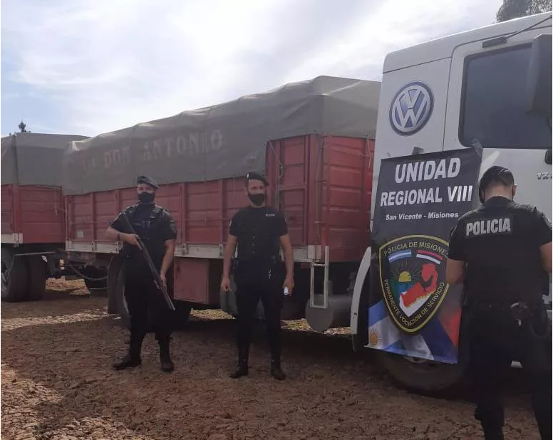 Los integrantes del Comando Radioeléctrico de San Vicente se hallaban apostados sobre la ruta, cuando observaron a los vehículos de gran porte ingresar a una senda alternativa para desviar el retén policial, actitud que llamó la atención de los uniformados.