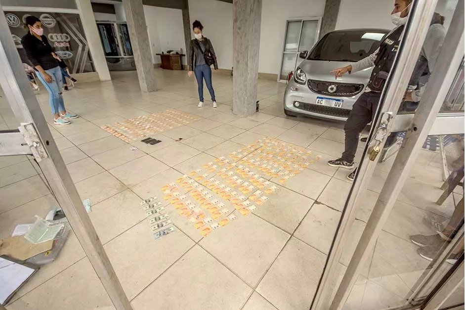 5.100 dólares: fueron incautados en los allanamientos ejecutados contra los sospechosos. También se halló medio millón de pesos y una contadora de billetes.