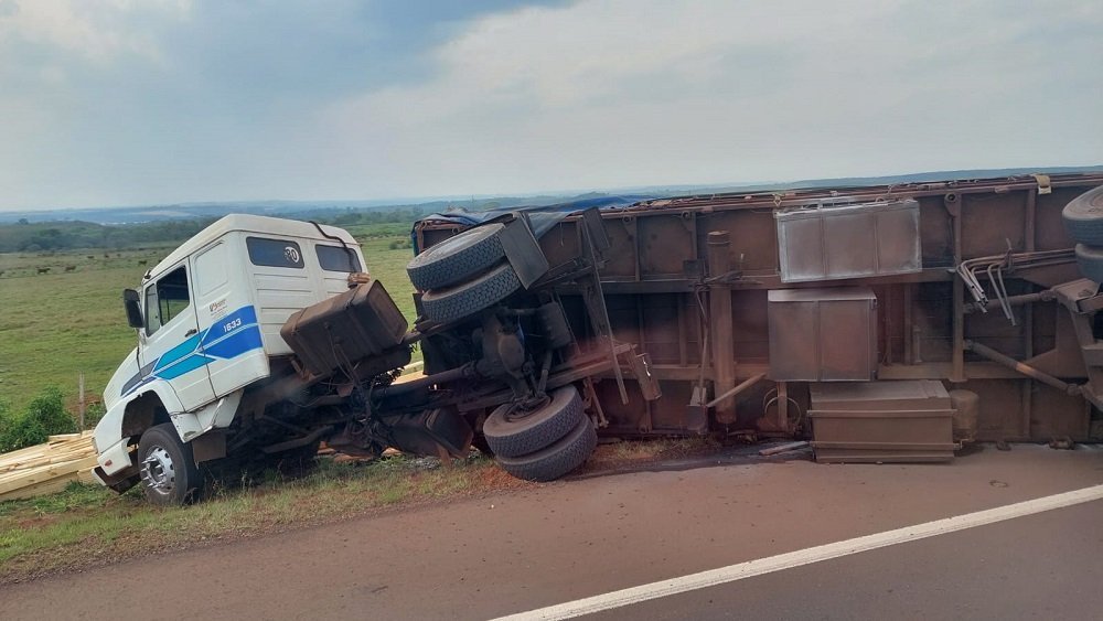 Según informaron desde la Dirección de Seguridad Vial y Turismo de la Policía, el hecho habría sido causado por la explosión de dos de las cubiertas laterales izquierdas, por lo que el conductor de 40 años perdió el control del rodado y se fue a la banquina, sin poder evitar el vuelco del acoplado y toda su carga.