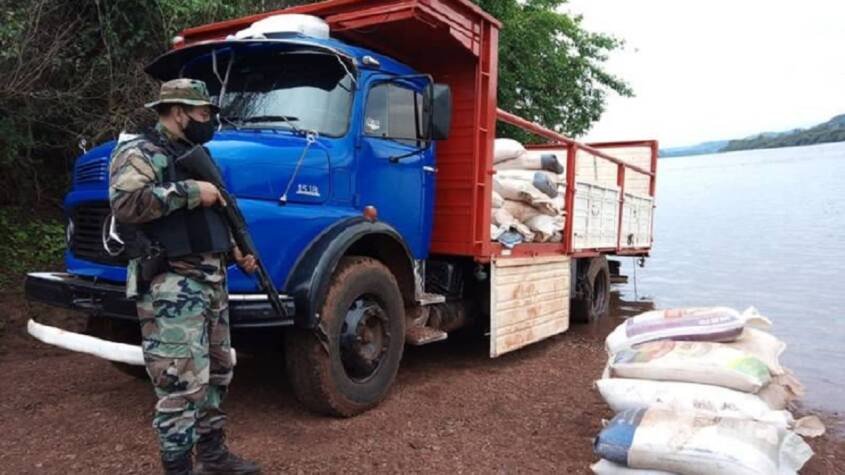 El hecho ocurrió cuando personal que realizaba un patrullaje de rutina, en la zona de frontera, observó, a la altura del kilómetro 1150 del río Uruguay, a varios individuos descargando bultos desde un camión hacia la costa.