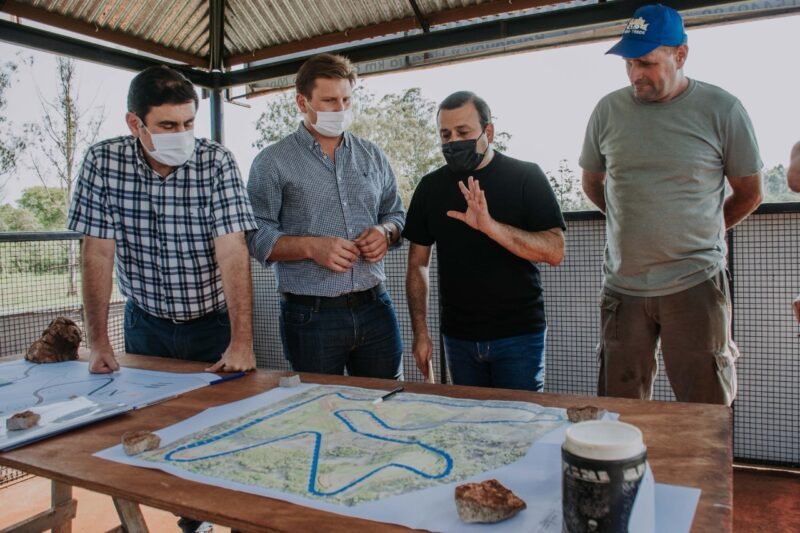 El mandatario provincial se reunió con el presidente de Vialidad Provincial, Sebastián Macías, el intendente Fabio Martínez, y la comisión directiva del Club para analizar el avance de obras y las posibilidades que tiene el terreno para convertir el actual circuito en un autódromo que pueda recibir al Turismo Carretera Nacional.