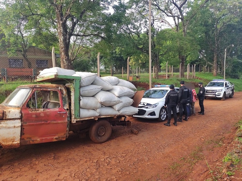 Fue así que, en cercanías de una pista de aterrizaje, interceptaron una camioneta Ford F-100 cargada con bolsas de materia prima para la infusión y a tres personas cambiando los neumáticos, quienes al notar a los policías intentaron huir a pie, pero no llegaron muy lejos ya que fueron aprehendidos.