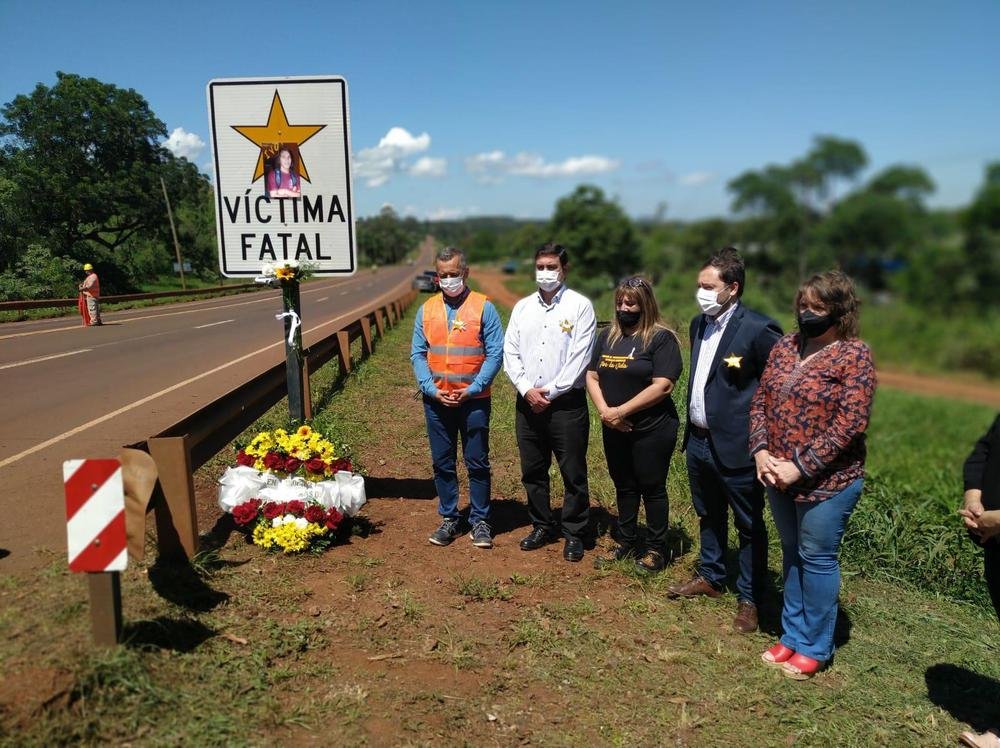 Por su parte, Mavi Araujo –madre de Ivo Korner y referente local de la Red Nacional de Familiares de Víctimas de Tránsito, en diálogo aseguró: “hemos cumplido con una parte de lo que es la campaña nacional de concientización vial y es colocando la primer estrella amarilla en cartelería como lo establece la Resolución 1371/11 de Vialidad Nacional. De esta manera buscamos hacer entender a todo aquel que está detrás de un volante o un manubrio, de que de él depende quien está en la ruta; se trata de su propia vida como de la vida de los demás. Esta es la primera estrella amarilla que se coloca en la provincia de Misiones en el marco de una campaña que se está implementando en muchas provincias del país”. Mavi Araujo también destacó el trabajo y acompañamiento del titular de Vialidad Nacional en Misiones, ingeniero Rodolfo Omar Andrujovich, “él se comprometió a acompañarnos, como así también solucionar la falta del cartel de Ivo que desconocidos sustrajeron días pasados; apenas lo pusimos en conocimiento de lo sucedido, en pocas horas solucionó la situación, lo que demuestra que tanto a nivel nacional como provincial hay compromiso con esta campaña. Nuestro gran objetivo es la concientización para que ninguna familia sufra estas tremendas pérdidas en siniestros viales”.
