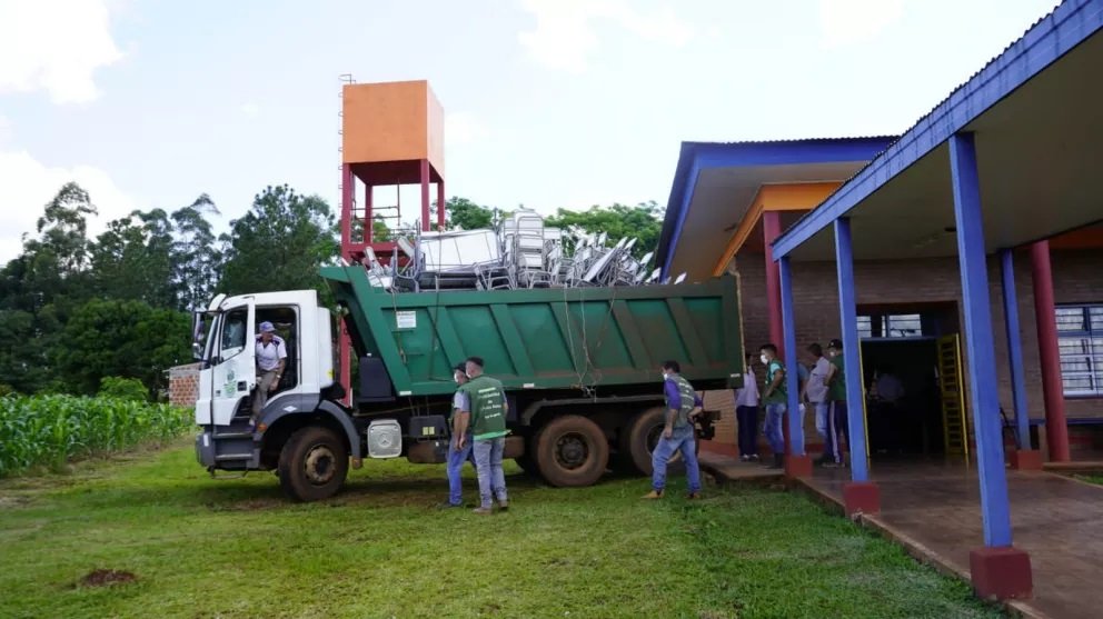 Más de quince instituciones de nivel primario de Colonia Aurora recibieron pupitres, sillas de metal, mesas, armarios, pizarrones y diversos otros mobiliarios.