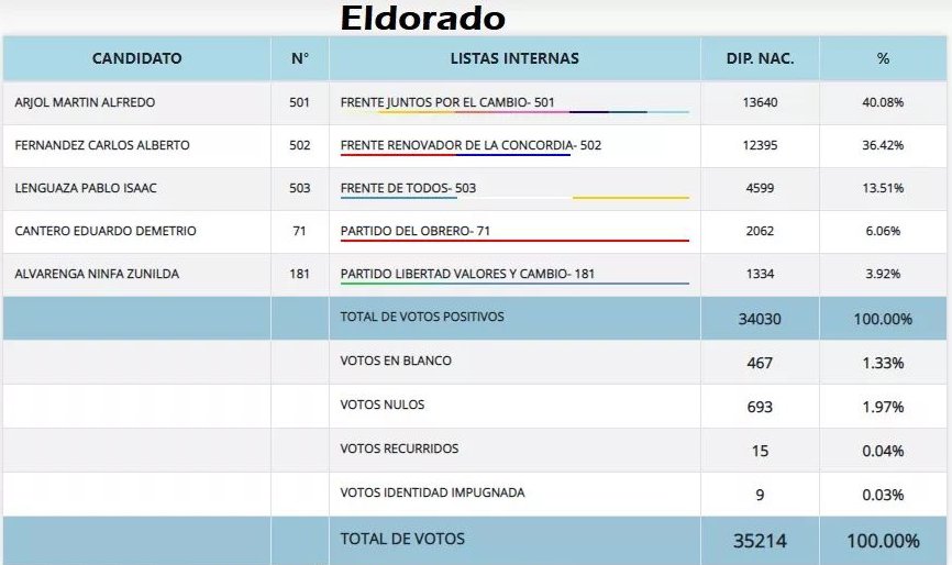 En segundo lugar se ubicó el Frente Renovador con el 35,42%.