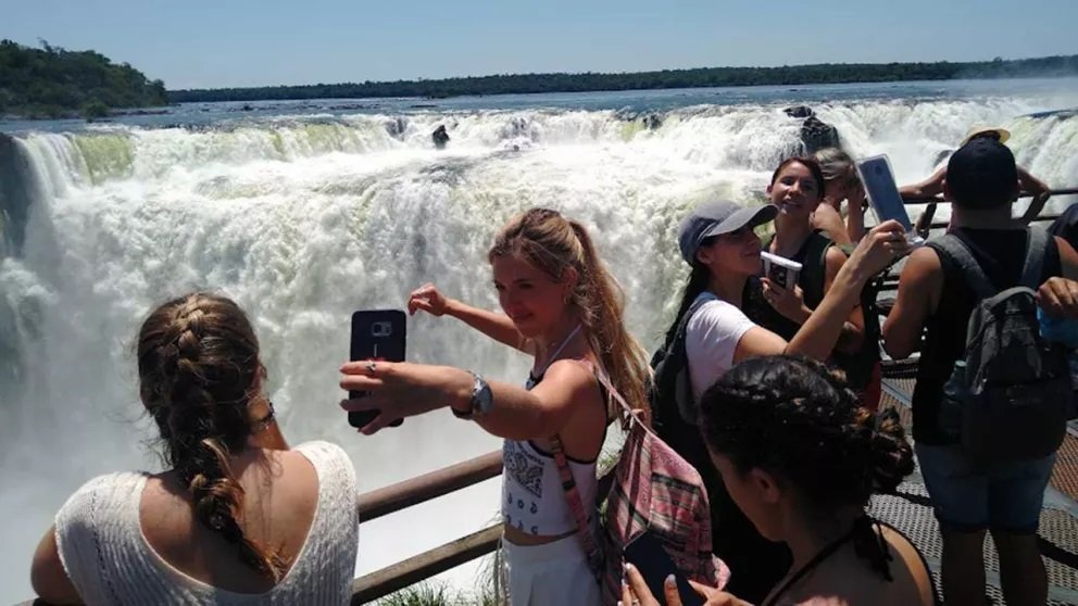 Por su parte, un grupo de amigos de Buenos Aires recorrió los senderos con cánticos para alentar a los equipos de fútbol. “Yo vengo por primera vez, los chicos ya habían venido y la verdad me sorprendí. Mucho calor, por momentos sofocantes, pero dentro de la selva y cerca de los saltos no se siente tanto. Esperaba más agua pero un guía nos comentó que el caudal estaba bajo y que era normal. Tendré que volver en otra época del año para disfrutar de más agua”, contó Bruno Medina.