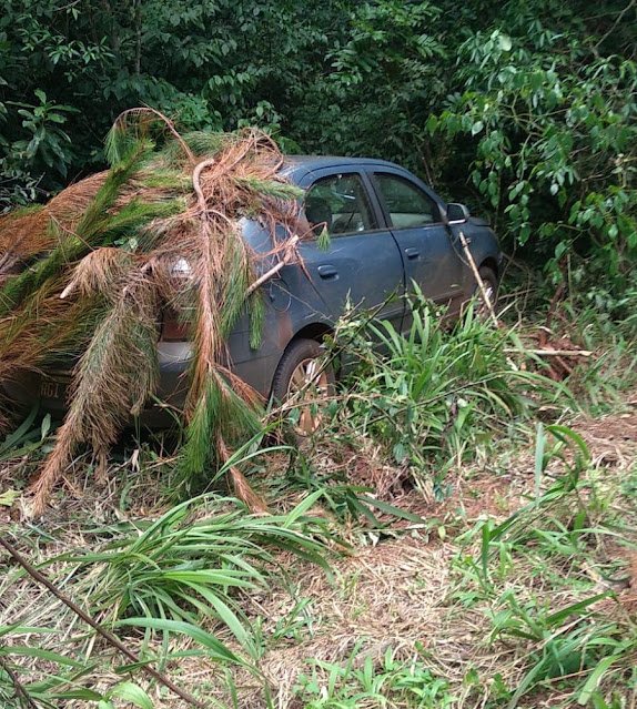 Los uniformados tomaron conocimiento de la situación a través del llamado anónimo de una persona quien observó un auto tapado con ramas de pino en una zona de monte sobre la Ruta Provincial 13 de San Vicente.