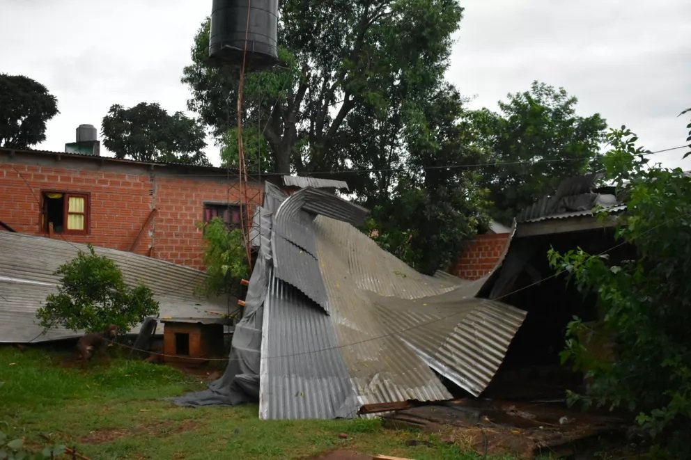 El viento arrancó por completo las chapas con las demás estructuras y lo mantuvo por el aire por unos 40 metros, cayendo entre dos viviendas.