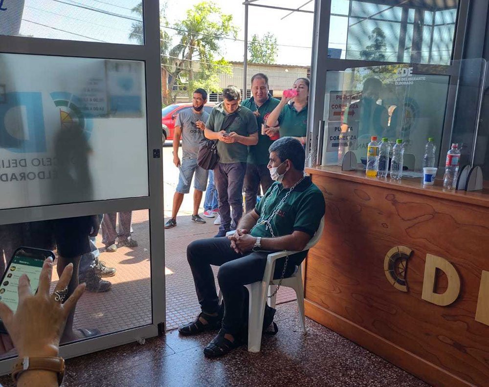 Los empleados no permiten que se realice la última sesión ordinaria del CD este jueves 09/12/21. El gremio pide respuesta ante reclamos sobre pases a planta de trabajadores.