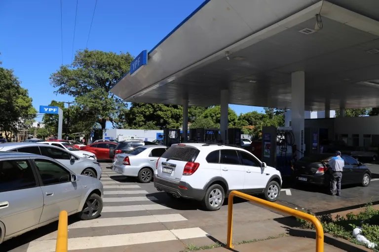 En las extensas filas también se destacaban los automóviles paraguayos que aguardaban para llevarse el muy económico combustible argentino.