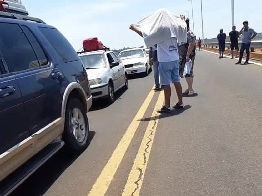 Este miércoles, con una temperatura superior a los 35 grados, casi se arma una verdadera batalla campal contra un automovilista “avivado” -de los que hay siempre- que se adelantó en la fila que se realiza a diario en el puente Internacional San Roque González de Santa Cruz, desde Encarnación (Paraguay) hacia Posadas.