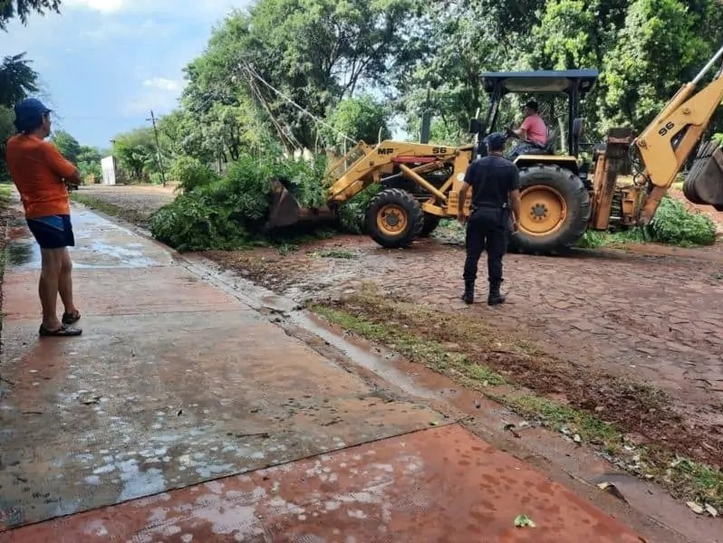 Seguidamente en Bonpland, a causa de la inclemencia del clima se registraron caídas de árboles en las calles principales, así también el corte del suministro eléctrico.