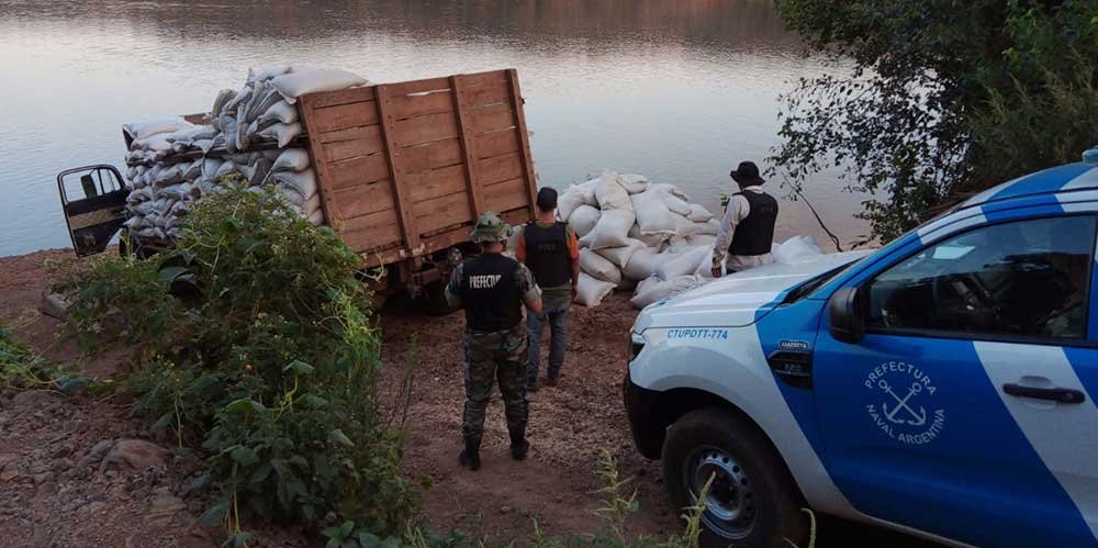 Efectivos de la Prefectura Naval Argentina incautaron un cargamento de 21.000 kilos de granos de soja, que iban a ser exportados ilegalmente, desde las costas misioneras de El Soberbio. Además, se secuestró el camión empleado para el traslado de la mercadería.