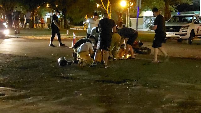 Fue en la noche del sábado, cerca de las 20:30, cuando una motocicleta Honda Bross 125cc circulaba por la Avenida Libertador de sur a norte cuando impacta una Toyota Hilux que venía de la calle Houssay de oeste a este.