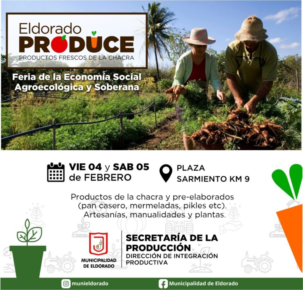 Este 4 y 5 de febrero se llevará a cabo la primer Feria del año de Eldorado Produce en la Plaza Sarmiento del kilómetro 9, la Feria de la Agronomía Social, Agroecológica y Soberana a cargo de la Secretaria de la Producción de la Municipalidad de Eldorado.