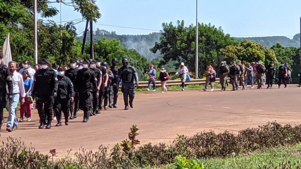 Momentos de alta tensión se vivieron sobre la Ruta Nacional 12 en la localidad de Montecarlo. Efectivos de la Policía de Misiones impidieron que manifestantes de CTA interrumpan el tránsito sobre la arteria nacional.