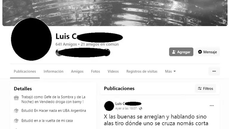 “Por las buenas se arreglan y hablando, si no a los tiros donde uno se cruza nomás, corta”, se lee en uno de sus posteos.