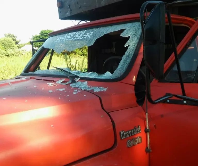 En diálogo, el emprendedor se mostró abatido por el perjuicio económico que le ocasionó la rotura de los parabrisas de dos camiones que utilizan para transportar y exhibir los ladrillos.