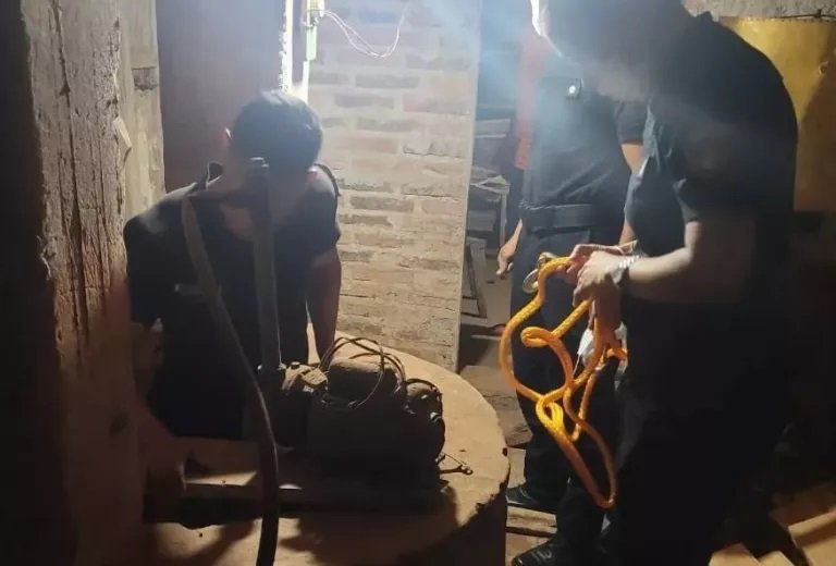 Efectivos de la seccional 17.ª junto a bomberos policiales, rescataron este miércoles a una mujer de 61 años, quien había descendido a un pozo de agua de unos 15 metros de profundidad aproximadamente para rescatar a su perro que cayó por accidente al interior.