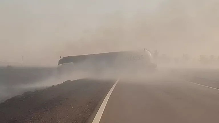 Un camión de gran porte se trasladaba por ruta 14, sentido Alvear-Santo Tomé, cuando el fuego le cercó el paso y terminó incendiado. Los incendios registrados en toda la zona rural y parte de la ruta lo cercaron, y se produjo un incendio de grandes magnitudes en la zona de la Estancia Militar El triunfo, a unos 15 kilómetros al Sur de Santo Tomé.