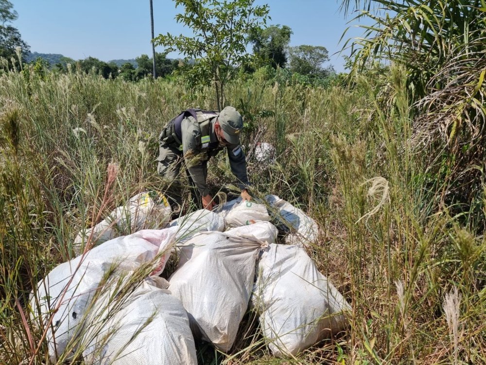 Integrantes de Gendarmería se dirigían a verificar focos ígneos en la zona del Cerro Santa Ana cuando fueron alertados de la existencia de bultos sospechosos escondidos a la vera de la Ruta 12 en la zona conocida como la entrada al Cámping Municipal “LA BOCA”, en el municipio de Santa Ana.