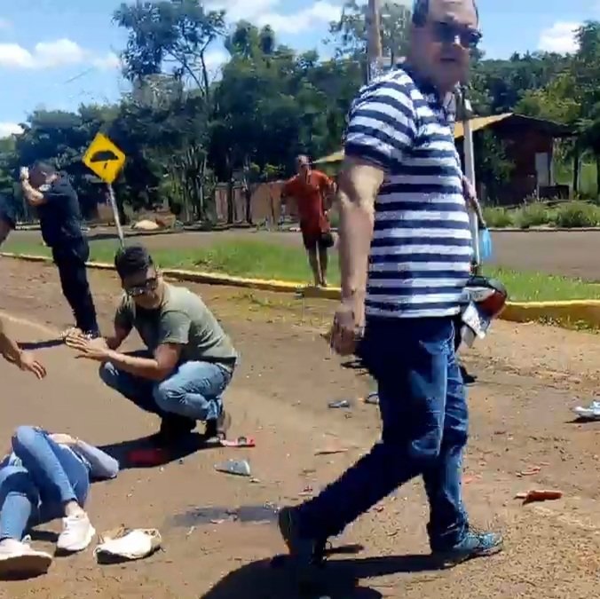 provocando un accidente de transito en la cual la damnificada fue la Srta. Paola Sosa que sufrió varias fracturas en su cuerpo , en pierna y cadera , en el video que adjuntamos se le puede escuchar a la Srta. Paola lamentándose del dolor que esta sufriendo por los traumas sufrido.