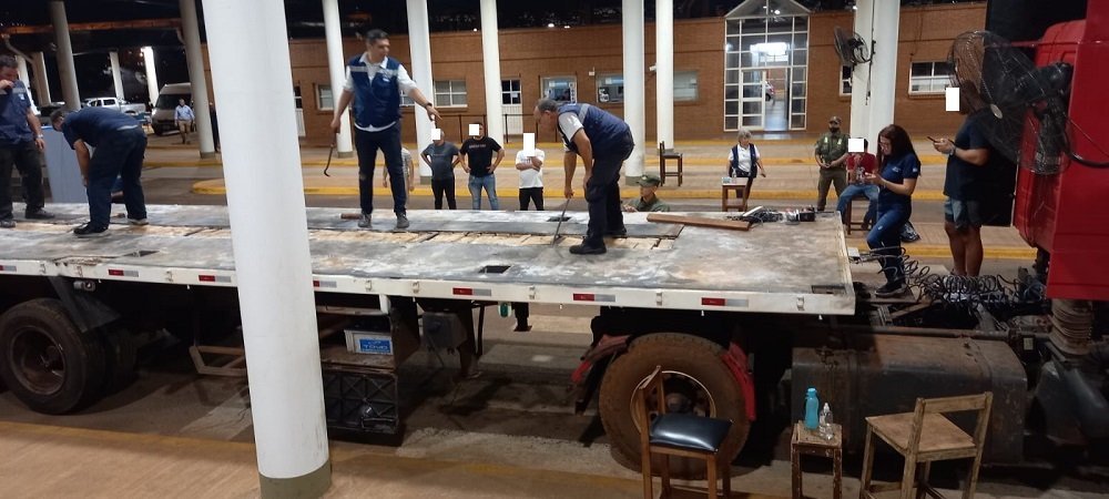 El remolque de un contenedor vacío que viajaba rumbo a Uruguay y había partido de Paraguay pocas horas antes, fue descubierto durante la noche de este miércoles por efectivos de Aduanas en la cabecera argentina del puente San Roque González de Santa Cruz cargado con ladrillos de marihuana prensada.