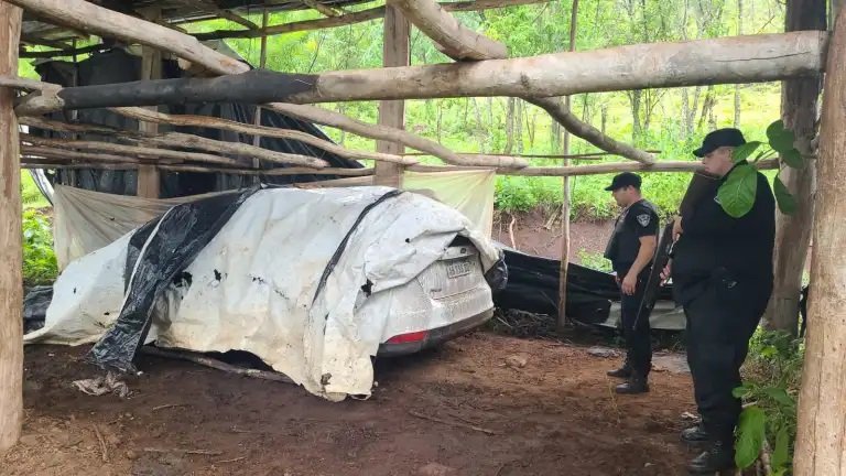 Allí siguieron las huellas del coche que llegaron hasta un galpón, en donde el rodado estaba abandonado y tapado con unas lonas.