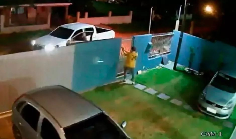 El video dura unos ocho minutos y en determinado momento se ve como el visitante golpeó en la cabeza con el arma al dueño de casa en varias oportunidades. Luego volvió para su vehículo, estacionado encendido en la calle, y salió de plano. Ese fue el instante en el cual el detenido aprovechó para abrir fuego.