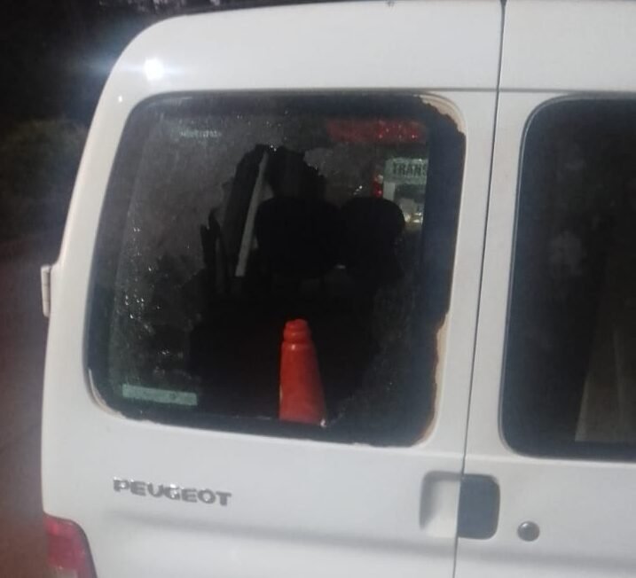 Con una botella y piedras, los agresores rompieron los cristales de la luneta trasera del lado del conductor y golpearon la puerta del acompañante. Afortunadamente, no se registraron lesionados, solo daños materiales.