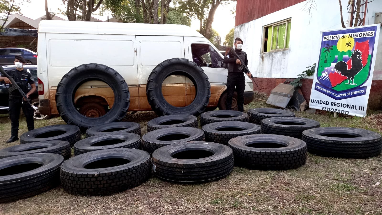 Inicio / POLICIALES / ELDORADO: Incautaron neumáticos sin aval aduanero que eran transportados en un utilitario