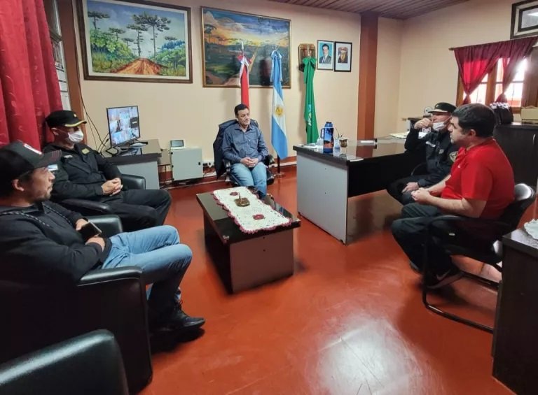 Además del recorrido por los puntos donde tienen previsto la instalación de los artefactos, tarea significante para el buen funcionamiento de las unidades, teniendo en cuenta que en varias calles existen árboles y pendientes que pueden debilitar la señal y arrojar un mal funcionamiento de las cámaras, mantuvieron una reunión con el intendente Miguel Dos Santos, a fin de coordinar las tareas de instalación.