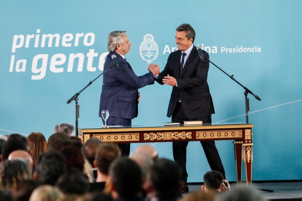 En un Museo del Bicentenario colmado de ministros, gobernadores, sindicalistas, legisladores, empresarios, personas del espectáculo y familiares, asumió como ministro de Economía Sergio Massa, en reemplazo de Silvina Batakis, en un intento del gobierno del Frente de Todos de estabilizar la situación económica. “Estamos empezando una etapa del gobierno que, estoy convencido, vamos a transitar exitosamente”, aseguró el presidente Alberto Fernández durante la ceremonia. Además, resaltó que el país tiene “una gran oportunidad” y pidió: “Unamos esfuerzos para salir adelante”. “No les hablo solo a mis compañeros del Frente de Todos, cuya unidad para mí es primordial y por eso voy a seguir trabajando, sino también a todos los argentinos y argentinas”, dijo. La vicepresidenta, Cristina Fernández de Kirchner, no estuvo en el acto, pero su apoyo a Massa ya había quedado claro desde que el lunes se reuniera con el tigrense.