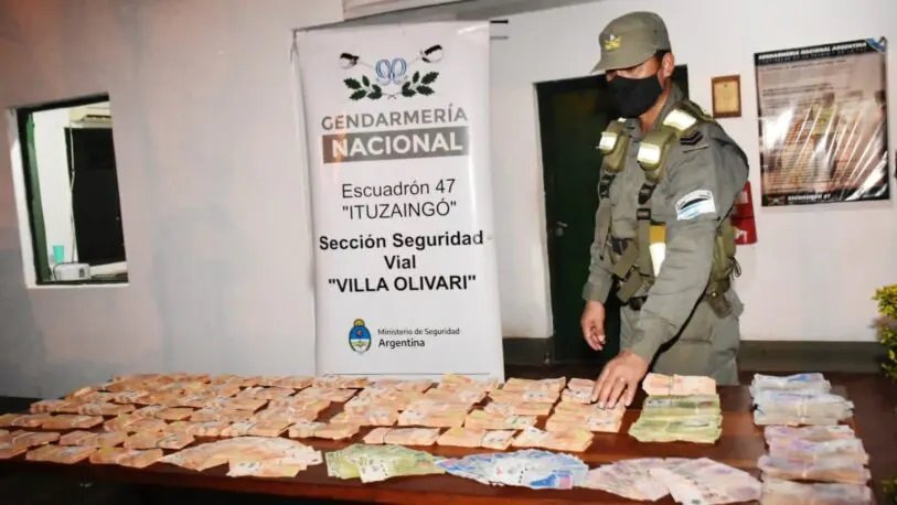 El dinero, que estaba acondicionado en paquetes rectangulares envueltos con papel y cinta de embalar, no contaba con documentación respaldatoria, informó Gendarmería.