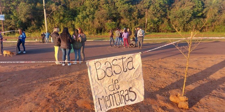 Un grupo de alrededor de 50 personas se manifestaron desde primera hora de este viernes sobre la avenida Las Américas de Garupá, bloqueando el tránsito sobre dicha arteria a la altura de la calle Libertad.
