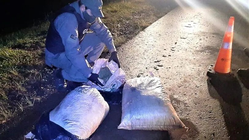 Ocurrió durante la madrugada del viernes en ruta 12 a la altura de Jardín América. Un auto giró en U, esquivó el control de gendarmería y huyó arrojando tres bultos con marihuana.