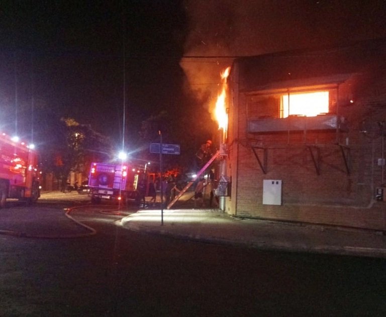 Por causas que son materia de investigación, el local comercial sufrió un incendio en la noche de este domingo. Las llamas se expandieron rápidamente abarcando gran parte del local, el sector más dañado fue la del depósito en el cual se encuentran las cámaras frigoríficas y donde se presume que se originó el fuego.