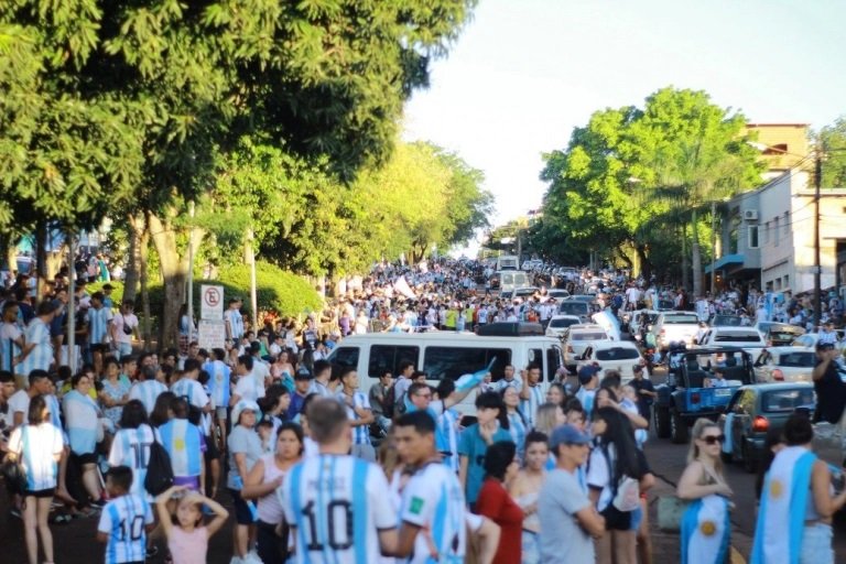 La celeste y blanca flamea a pura pasión en calles, avenidas, y plazas de todos los rincones de la provincia. El triunfo futbolístico de Argentina que lo llevó a la final del Mundial de Qatar 2022 se transformó en la alegría del año. Miles de misioneros salieron espontáneamente.