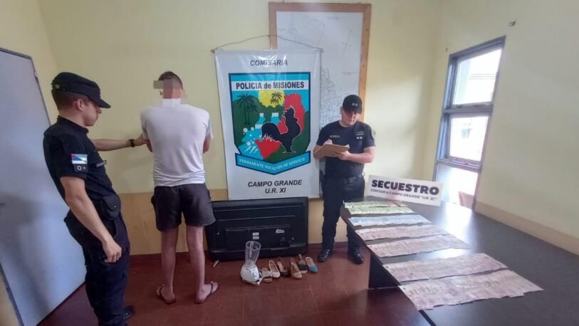 Por otro lado, Alejandro S. de 32 años, quien había ocultado en un yerbal distintos bienes y la suma de 40 mil pesos, que robó de un domicilio ubicado en el barrio 20 Viviendas, fue detenido el lunes en la localidad de Campo Grande y todo lo robado fue incautado.