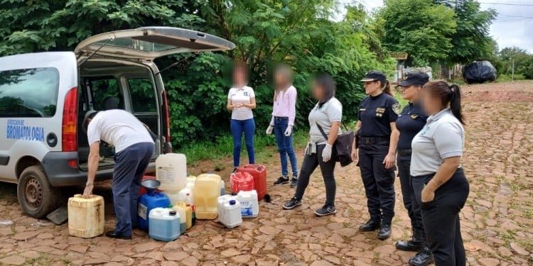 Los policías llegaron al domicilio en cuestión para dar cumplimiento a un oficio del Juzgado de Familia, pero en el lugar se toparon con la cantidad de recipientes, además de embudos y mangueras, destinados a la actividad ilegal.