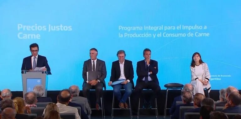 El minsitro de Economía Sergio Massa, y el Secretario de Comercio Matías Tombolini, presentaron este lunes un nuevo programa de precios controlados para siete cortes populares de carne. Será un programa que pondrá a disposición del pùblico, de todo el país, 15.000 toneladas mensuales de carne a un precio 30% menor al que se ofrece hoy en el marcado. El programa entrará en vigencia el viernes próximo, y se extenderá hasta el 31 de marzo. “¿Porquè le prestamos tanta atención a la carne? porque cuando miramos la inflación de enero vemos que el golpe más importante es la carne”, afirmó el Ministro Massa, que además confirmó que continúa el plan para reducir la inflación, y prometió anunciar más medidas para la micro economía en los próximos días. “Vamos a estabilizar la economía argentina para hacerla competitiva, y para que el ciudadano no sufra los serruchos que aveces se dan en la economía argentina.