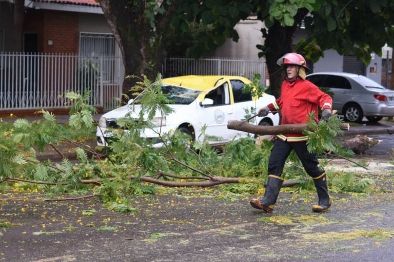 La tormenta que azotó esta tarde a Posadas provocó la caída de árboles en distintos barrios de la capital provincial.
