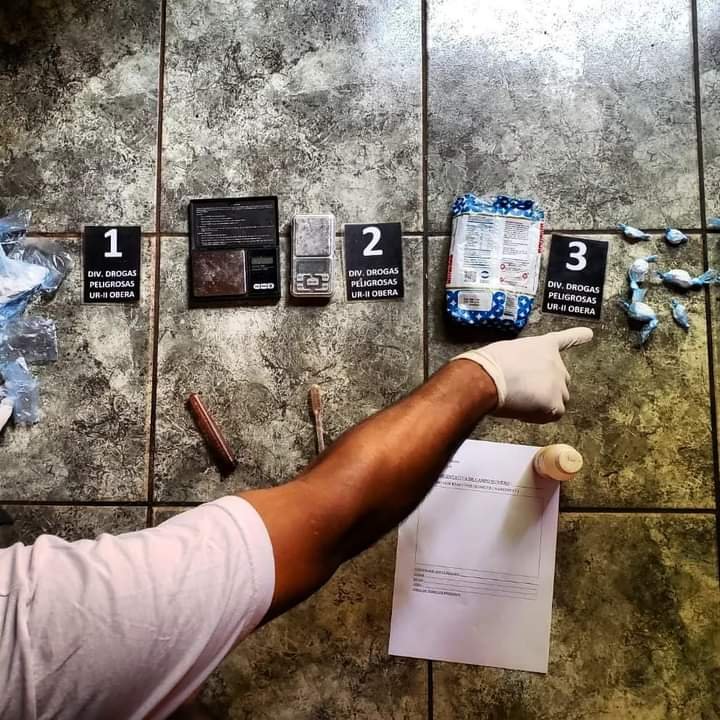 Por ello, por disposición del Juzgado de Instrucción Nro. 2 de Oberá, irrumpieron en el inmueble, hallando nueve envoltorios de clorhidrato de cocaína y dos balanzas electrónicas de precisión. Mientras que en otros departamentos incautaron dos motoguadañas, una amoladora, un chaleco táctico de uso policial, un cargador de fusil con tres municiones y más de un centenar de mercaderías sin aval aduanero, valuadas en más de 1 millón de pesos.