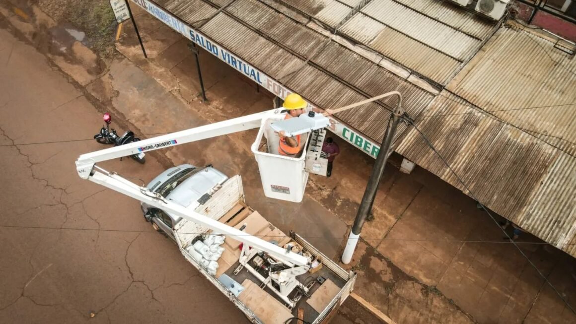 La Municipalidad de Eldorado, junto al equipo de Vialidad Provincial, continúa renovando las luminarias de la ciudad por nuevas lámparas con tecnología LED, que brindan más iluminación y generan menor consumo.